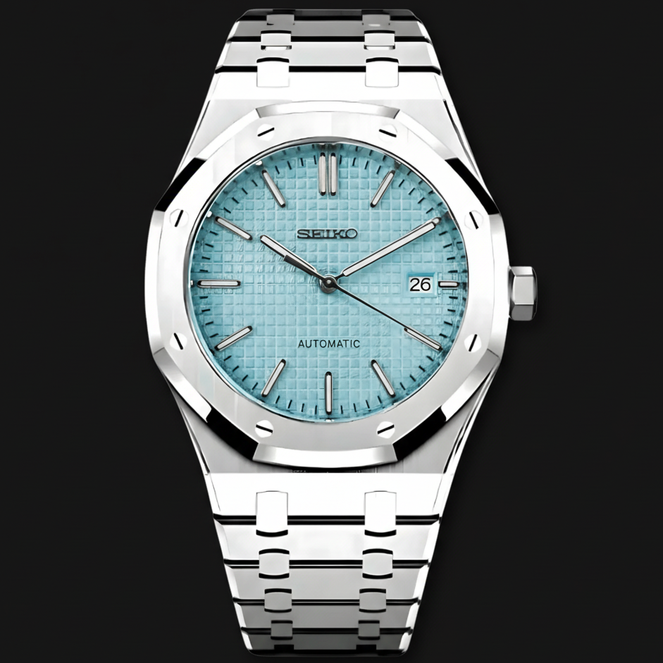 Inspirado en el Diseño icónico de Royal Oak y con el prestigioso logotipo Movimiento automático Seiko NH35 , presentamos el Seiko Mod Royal Oak. Un reloj de 41 mm de alta calidad. Combinando la alianza perfecta entre excelencia y accesibilidad.